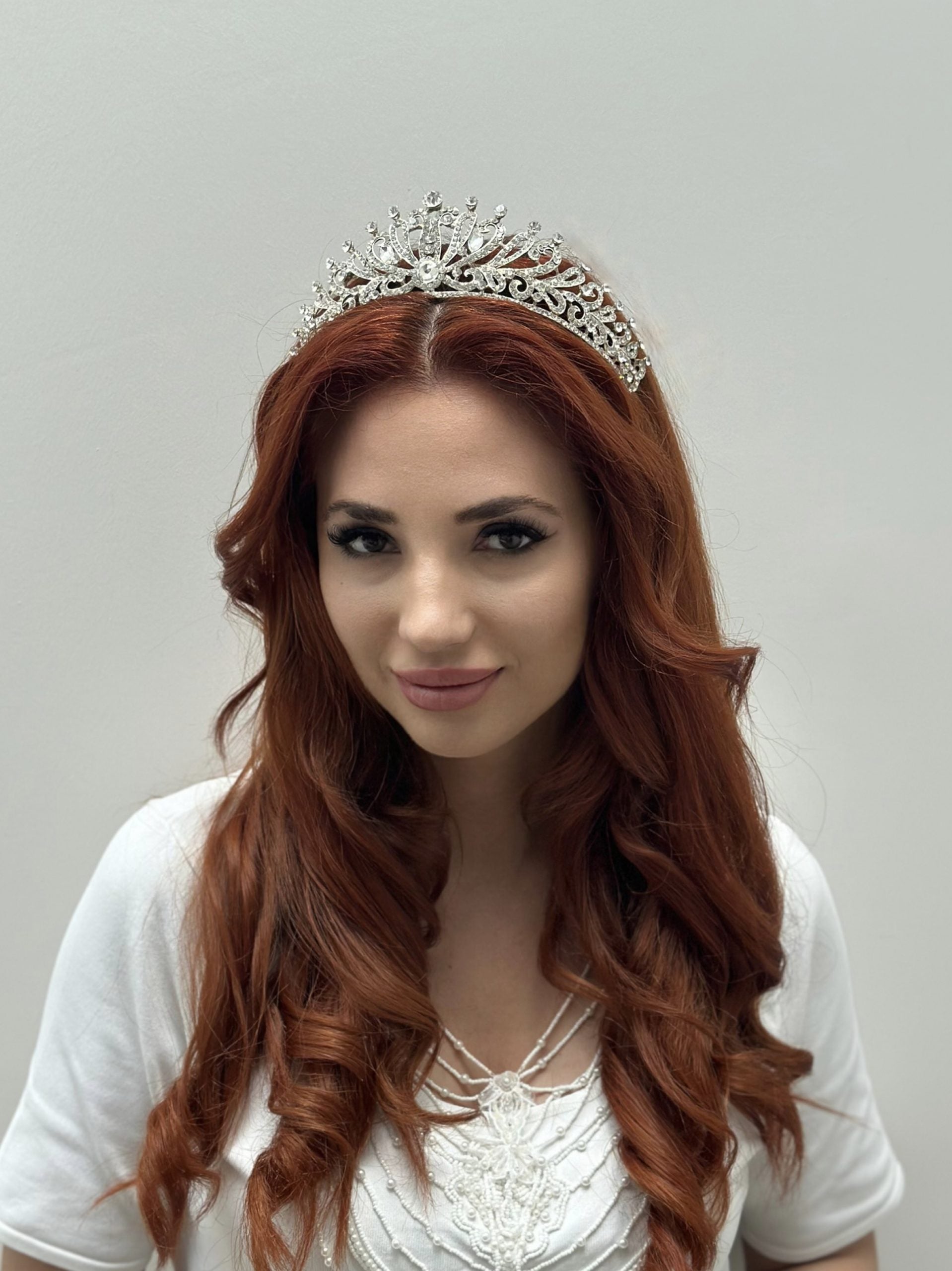 Elegant handmade oval bridal crown design made of A- quality zirconia stones. Make your special day extra magical by exploring one of the elegant designer crowns from the bridal accessories.