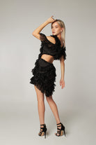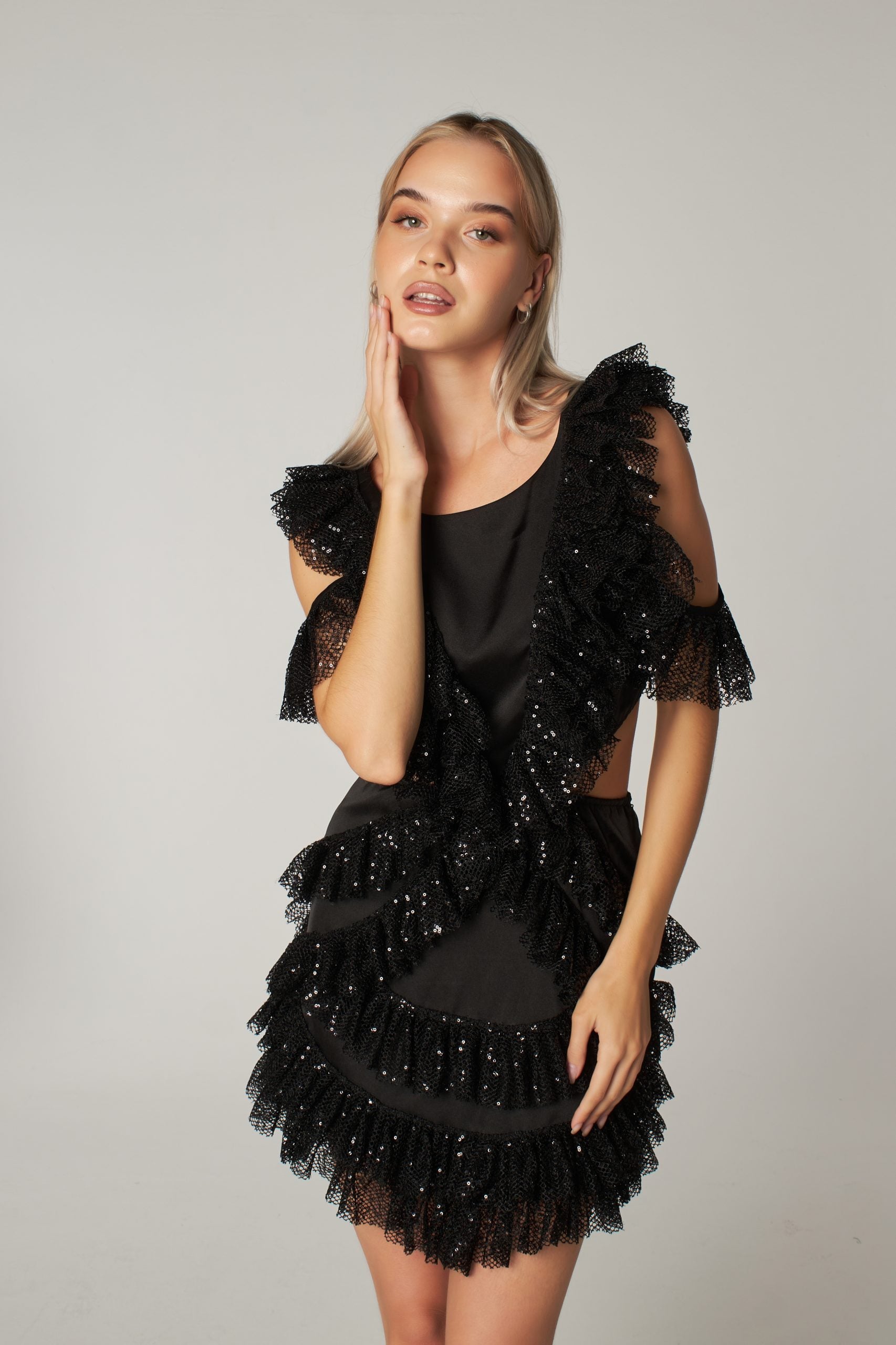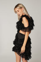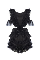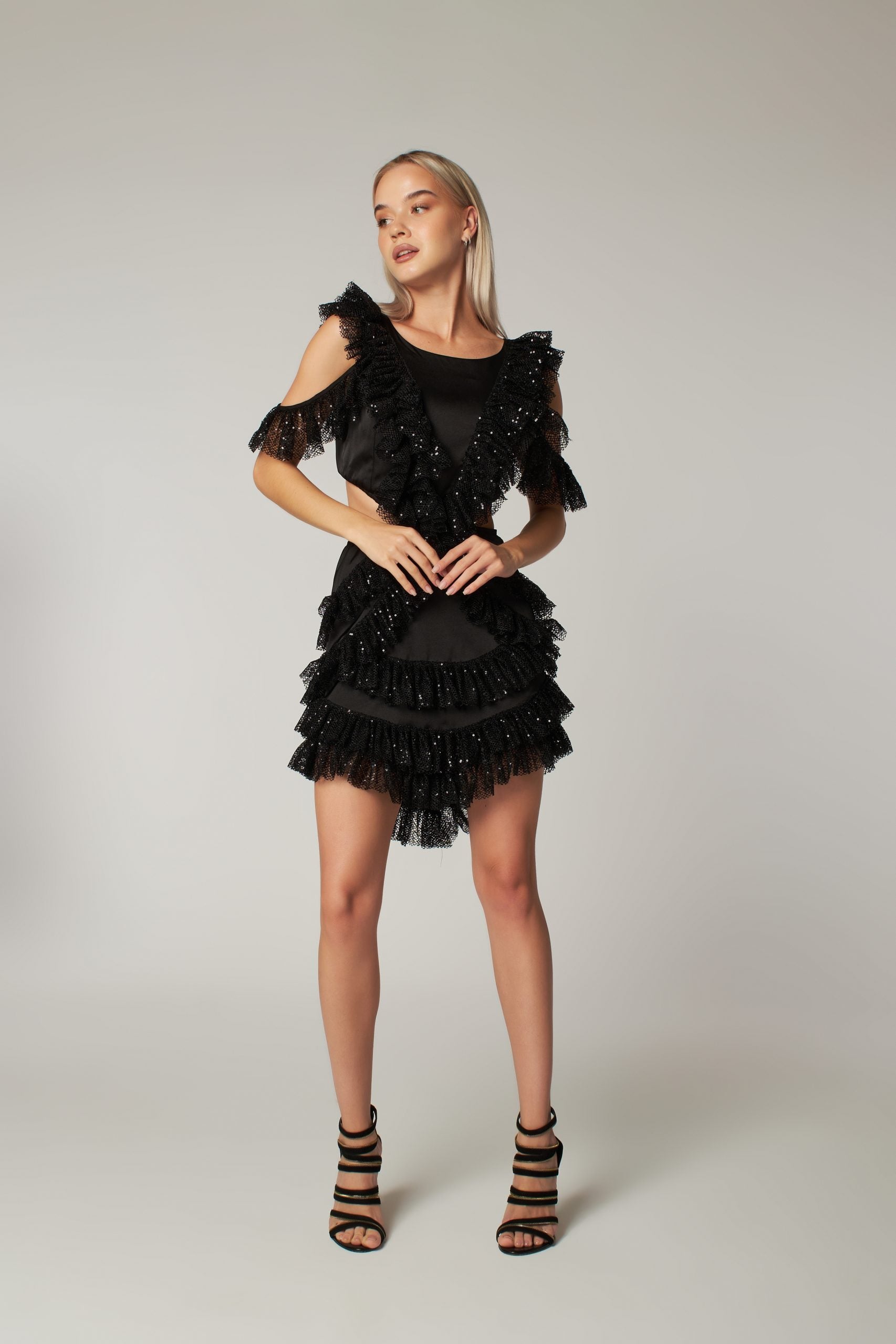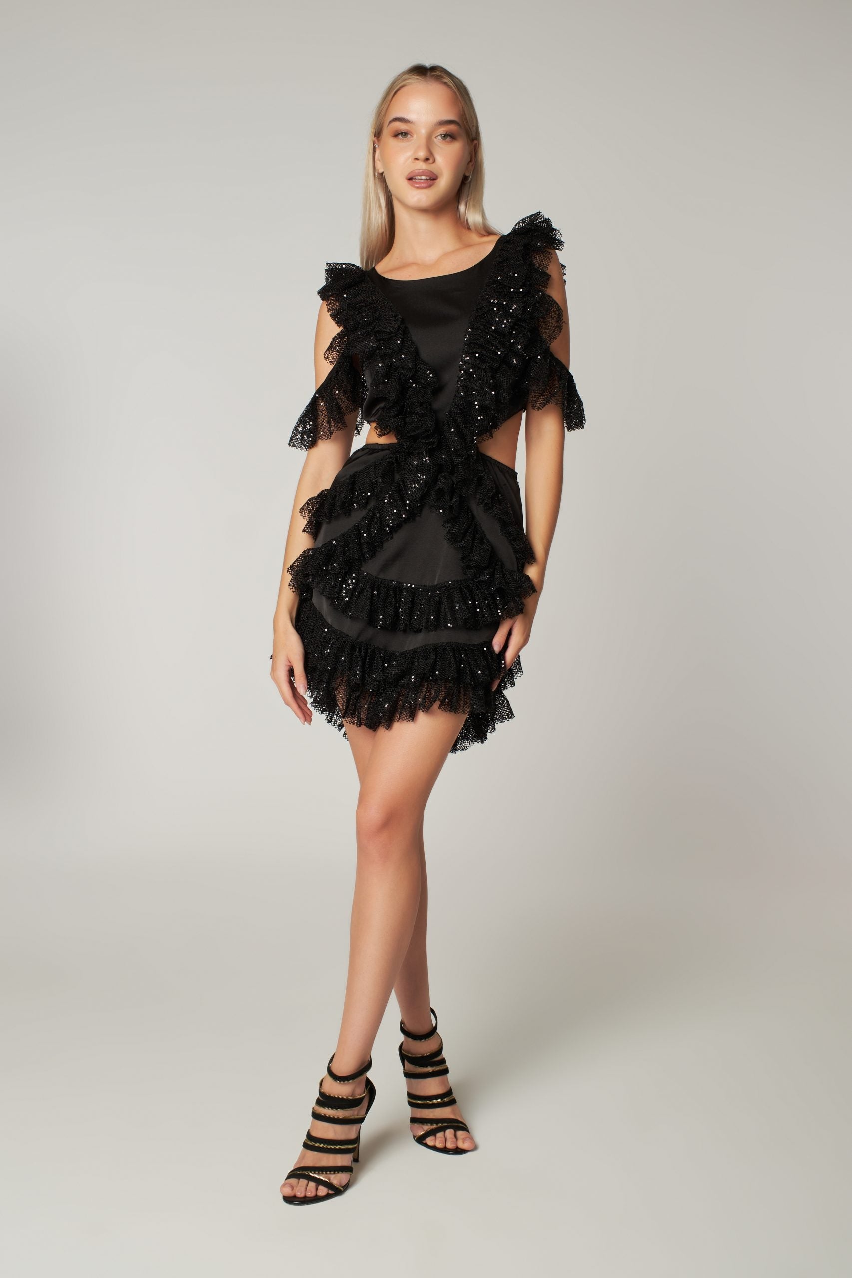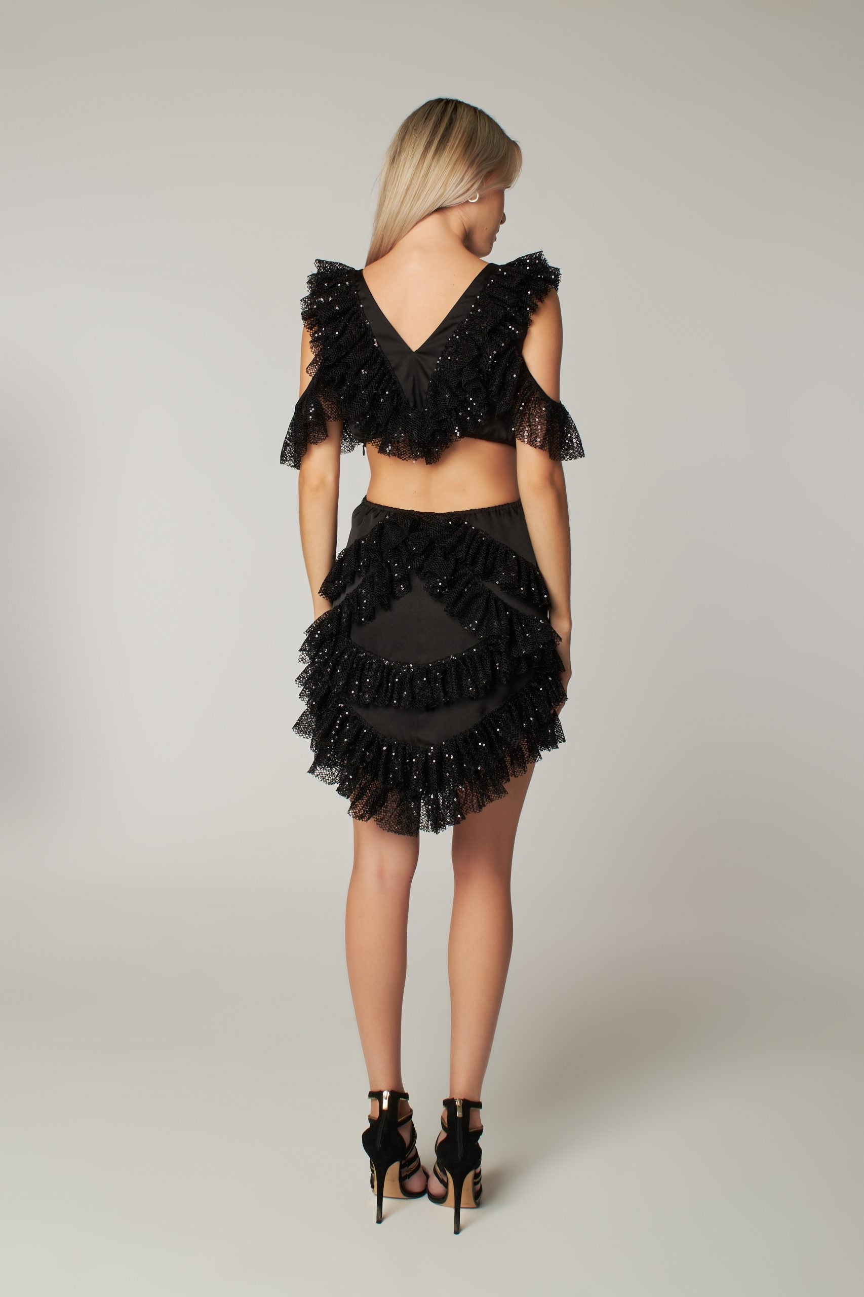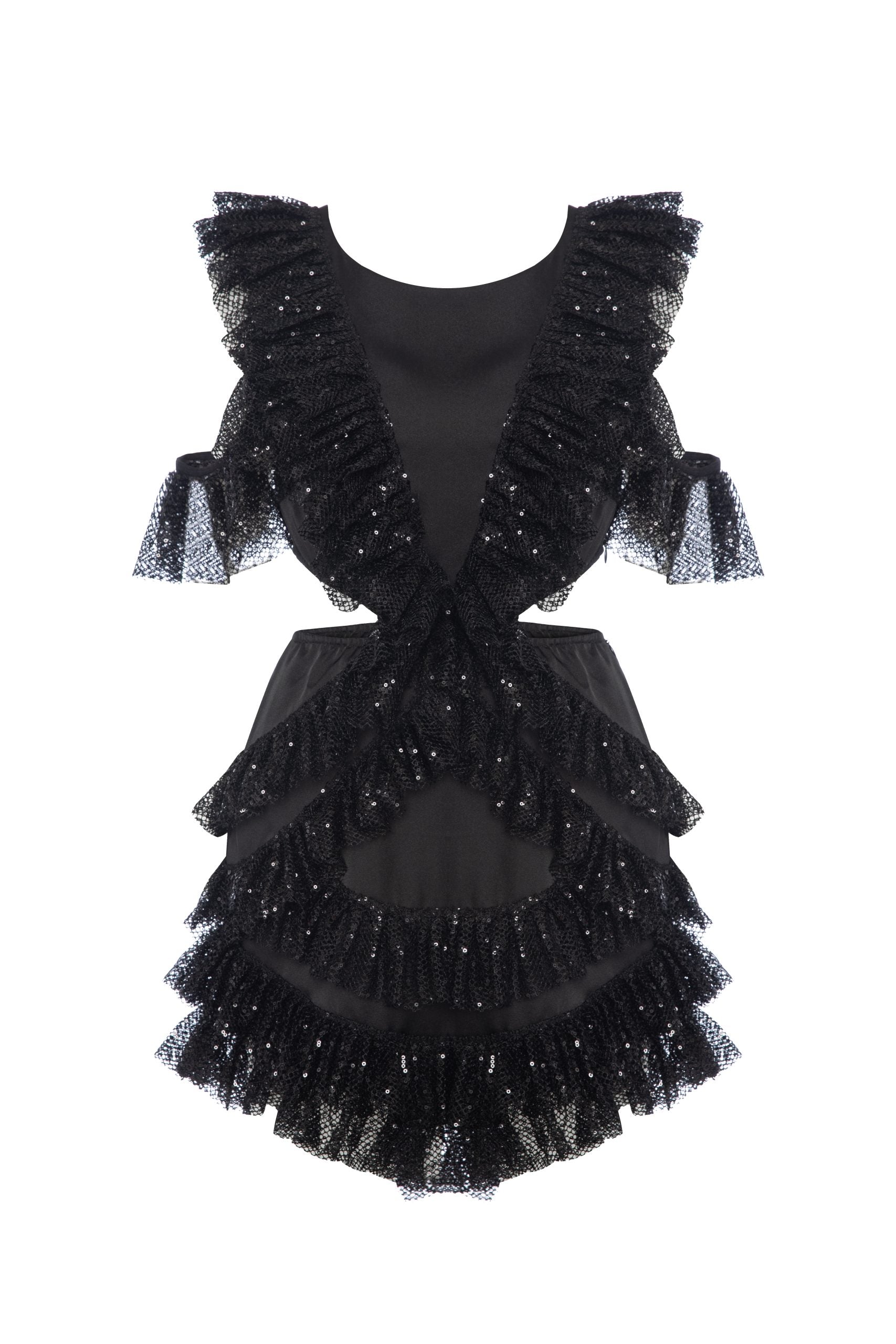 Black Sequin Cut Out Detailed Ruffled Mini Dress Viva