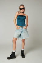 Let's corset outta here— with this baby ofc. This Boned Corset features seam detailing throughout , an edgy scooped neckline and asymmetrical, flattering bottom to enhance your curves and leave you looking snatched with Tie Back Fastening. Looks rad with distressed mom jeans and chunky biker boots.