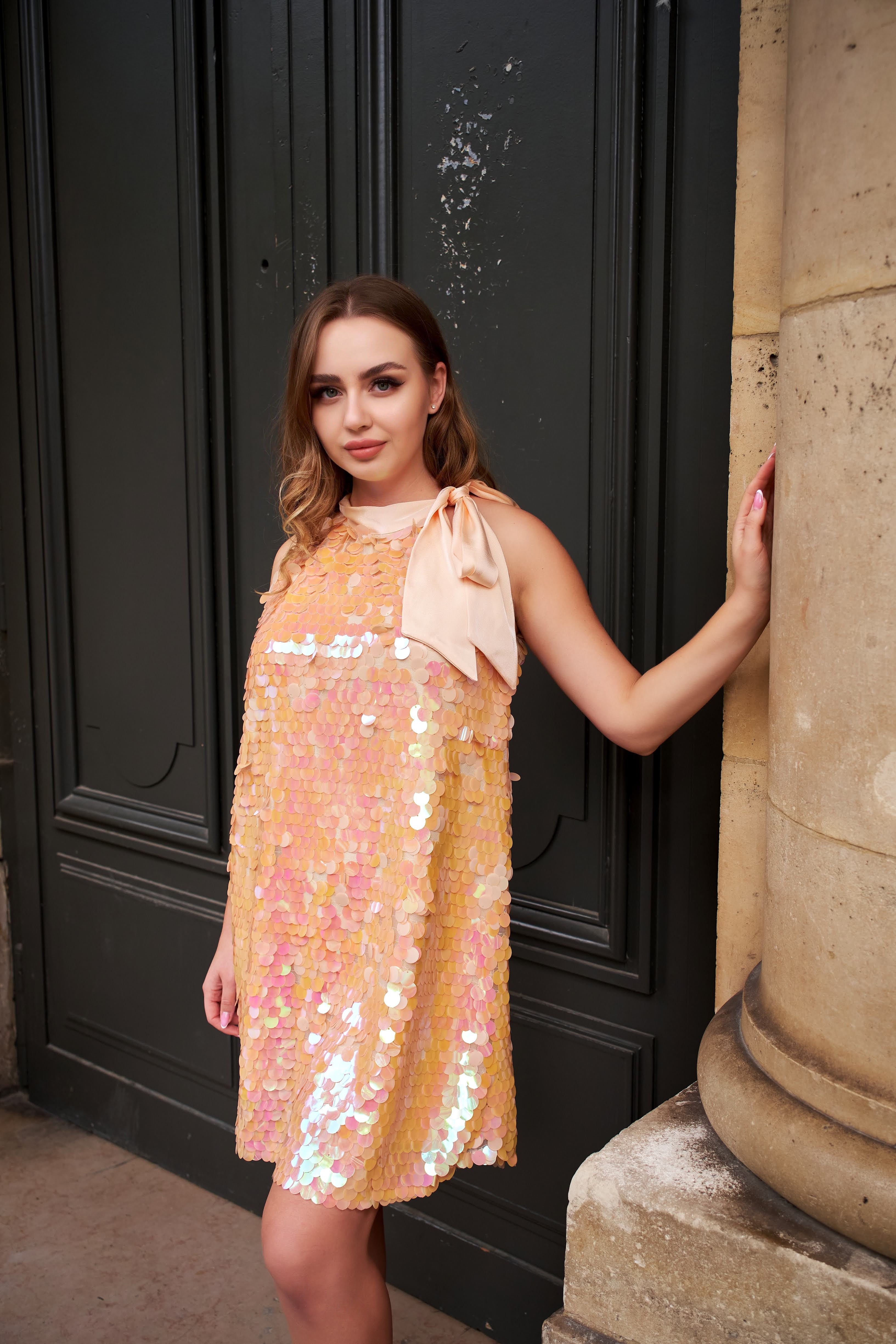 Peach Sequin Side Cut Out Mini Dress Hailey