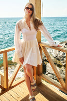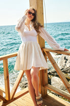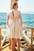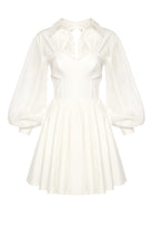 Designed in a breathable cotton fabric this modern cut dress features a corset to cinch the fit for desirable comfort, and a fit-and-flare shape, combined with its relaxed neckline and loose shirt sleeve details. This item is a must-have for every fashionista, who loves to feel comfortable and stylish at the same time. Because of its delicate soft structure, you can wear it to any occasion, from day events, parties, night parties, and even formal weddings.