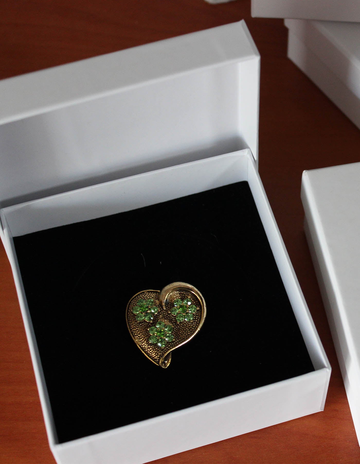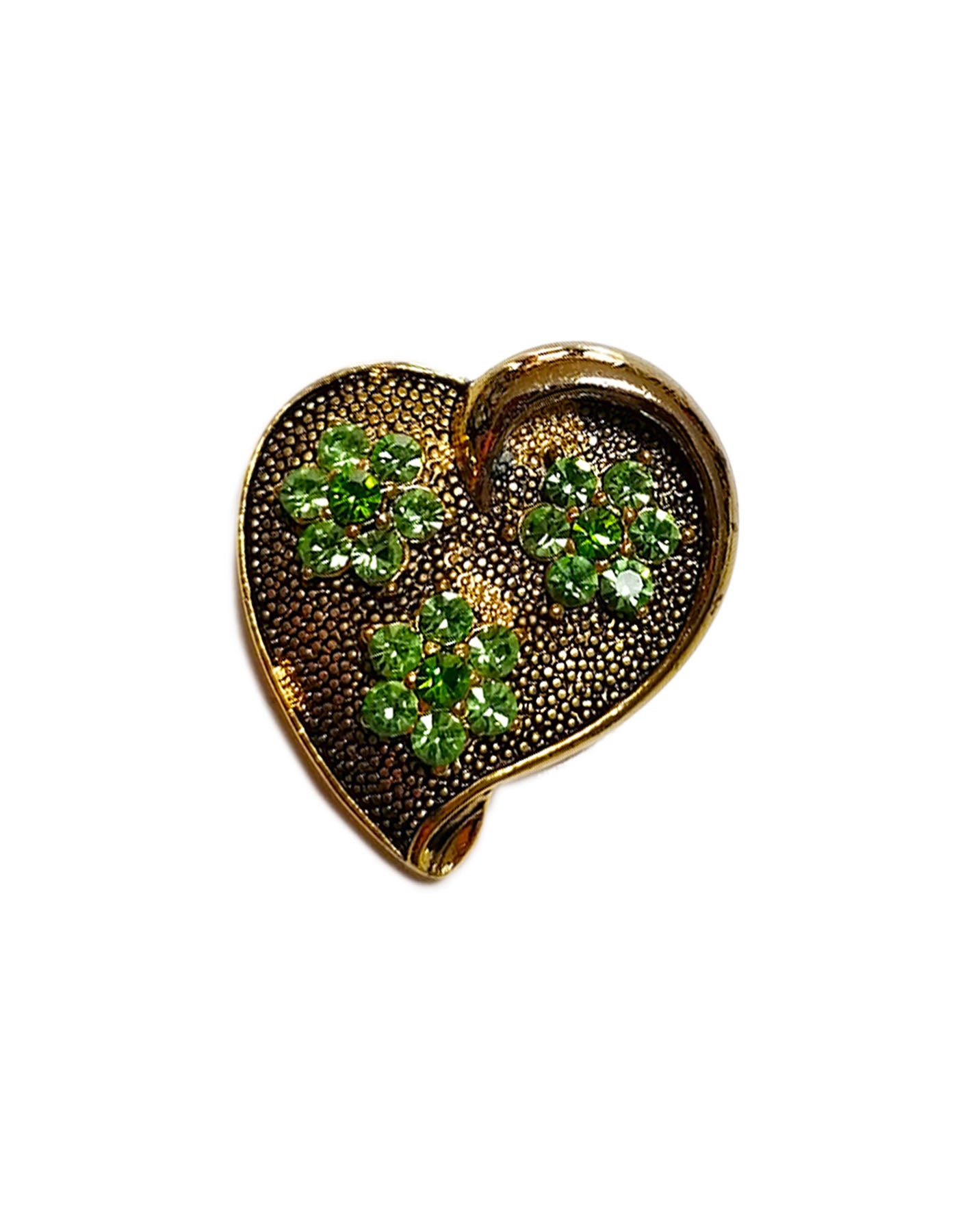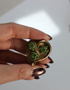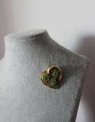 Broche baroque en or en forme de cœur avec détails de fleurs vertes triples