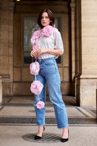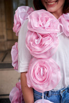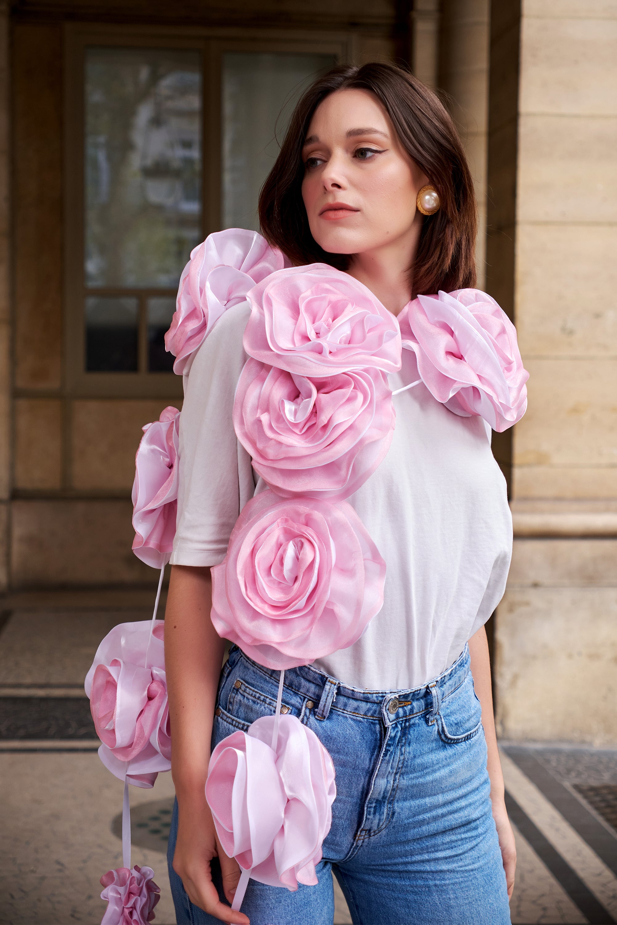 Combination of Italian Pink and White Monoray Organza roses Boa . Meticulously handcrafted flowers for visual perfection have 2 shades pink and white . It Offers endless styling possibilities ;You can wear it around your neck or on your shoulder and easily combine it even with a simple black thin-strap blouse or turn your little black dress into Roses Dream dress