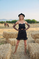Ensemble Bustier & Jupe & Gants Noir à Pois CAROLINE