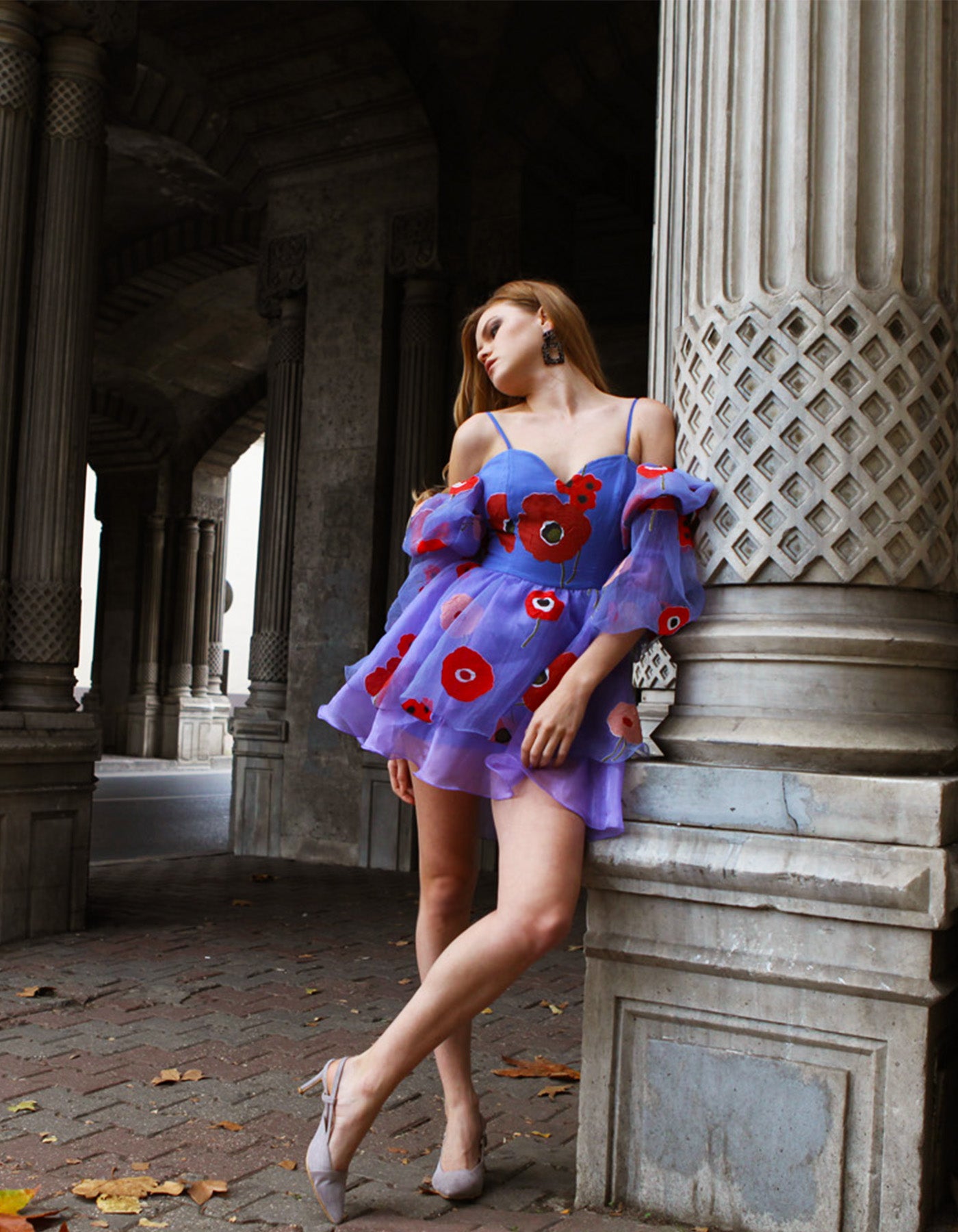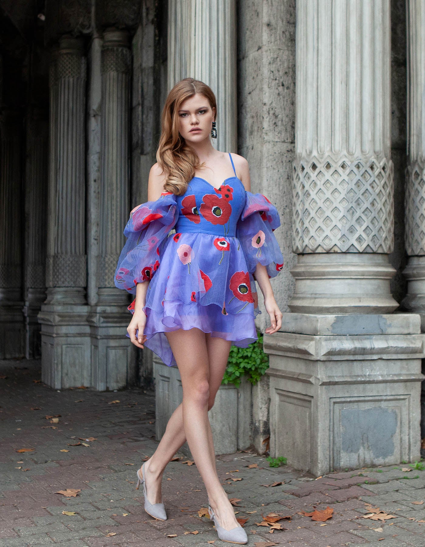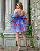 Mini-robe bleue à manches bouffantes CAMİLA