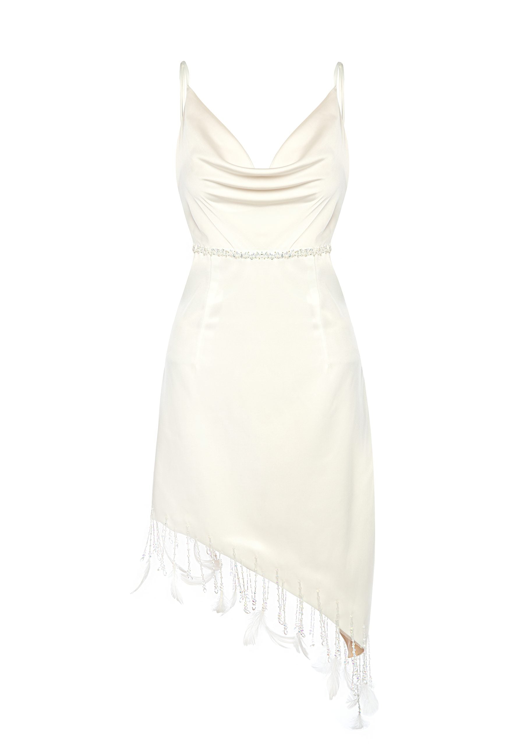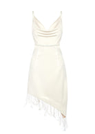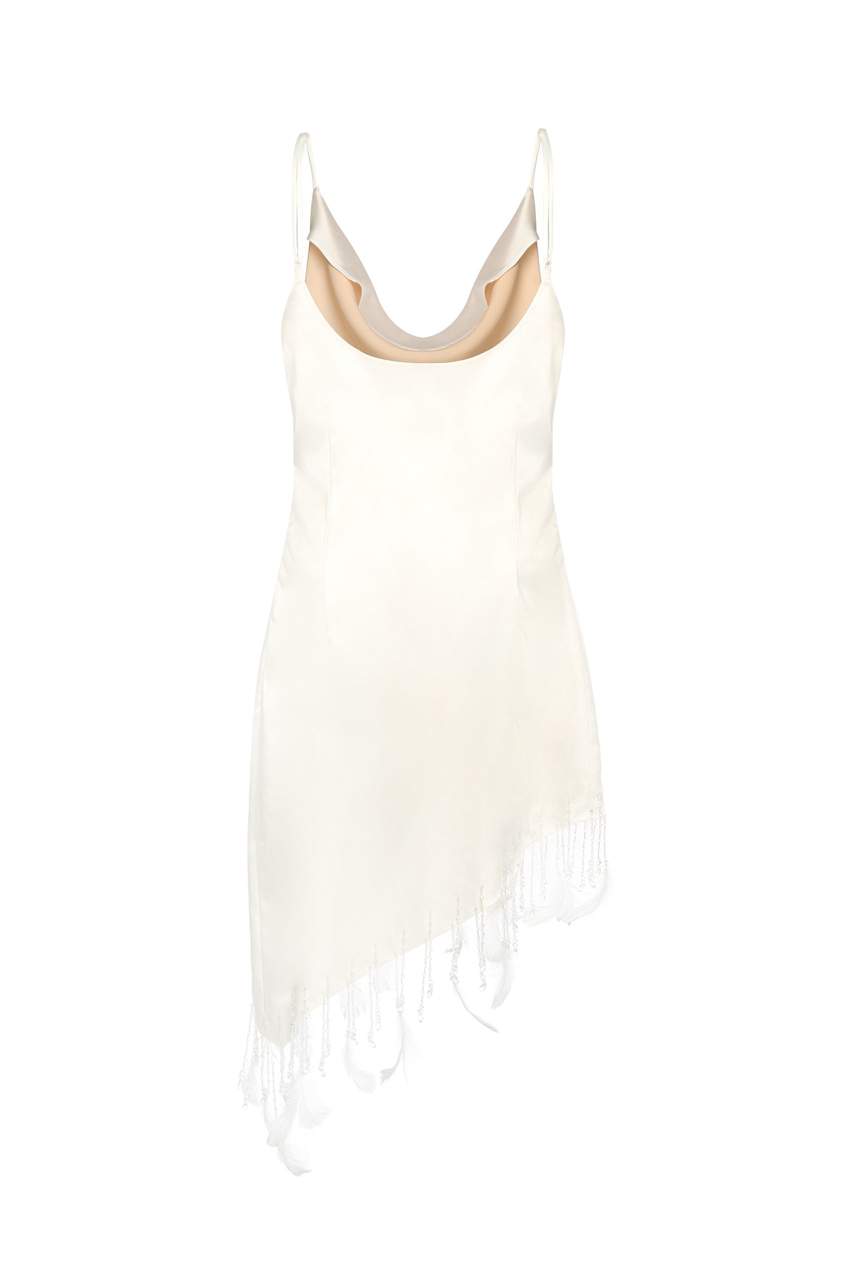 Robe asymétrique à col bénitier et à pampilles perlées Gia