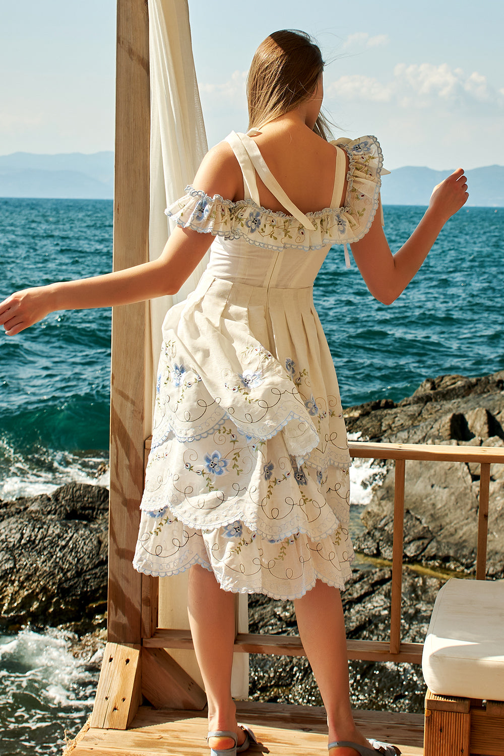 Robe en lin à épaules dénudées et à volants Bella Vista