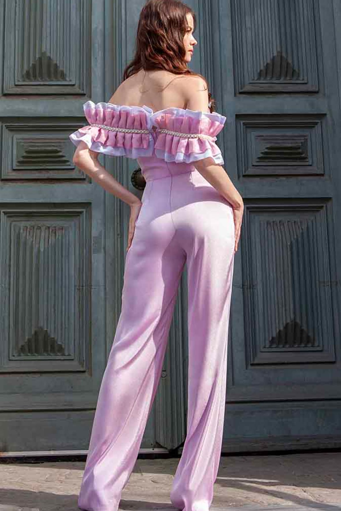 Combinaison rose blush à volants Ivy