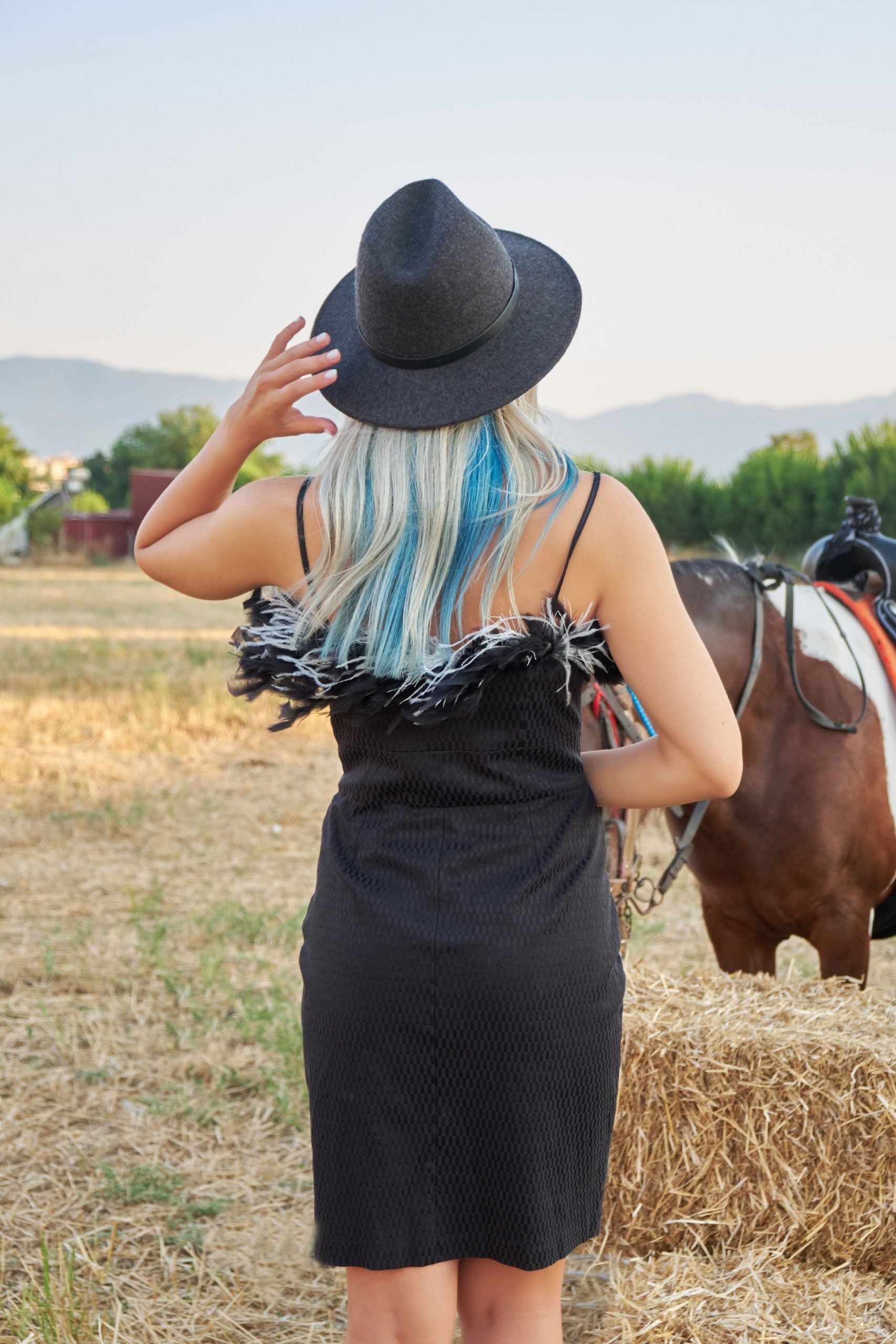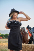 Robe à plumes noire et blanche KARIN