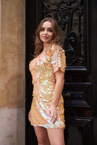 Peach Sequin Mini Dress And Bolero Set Luna