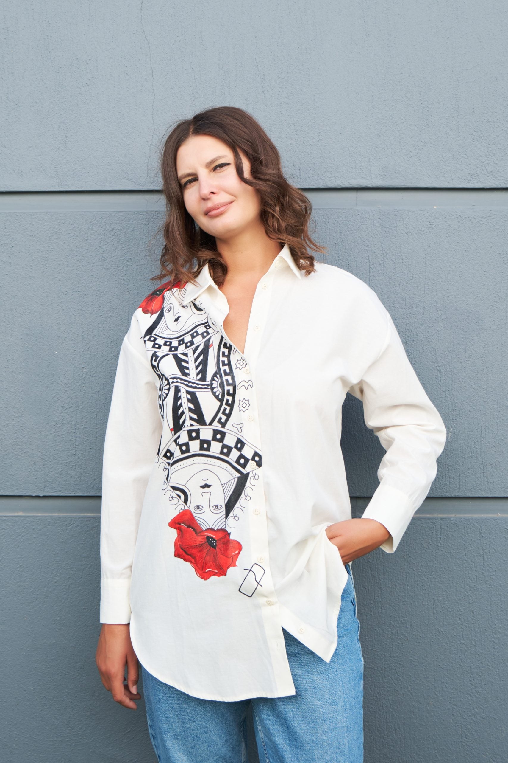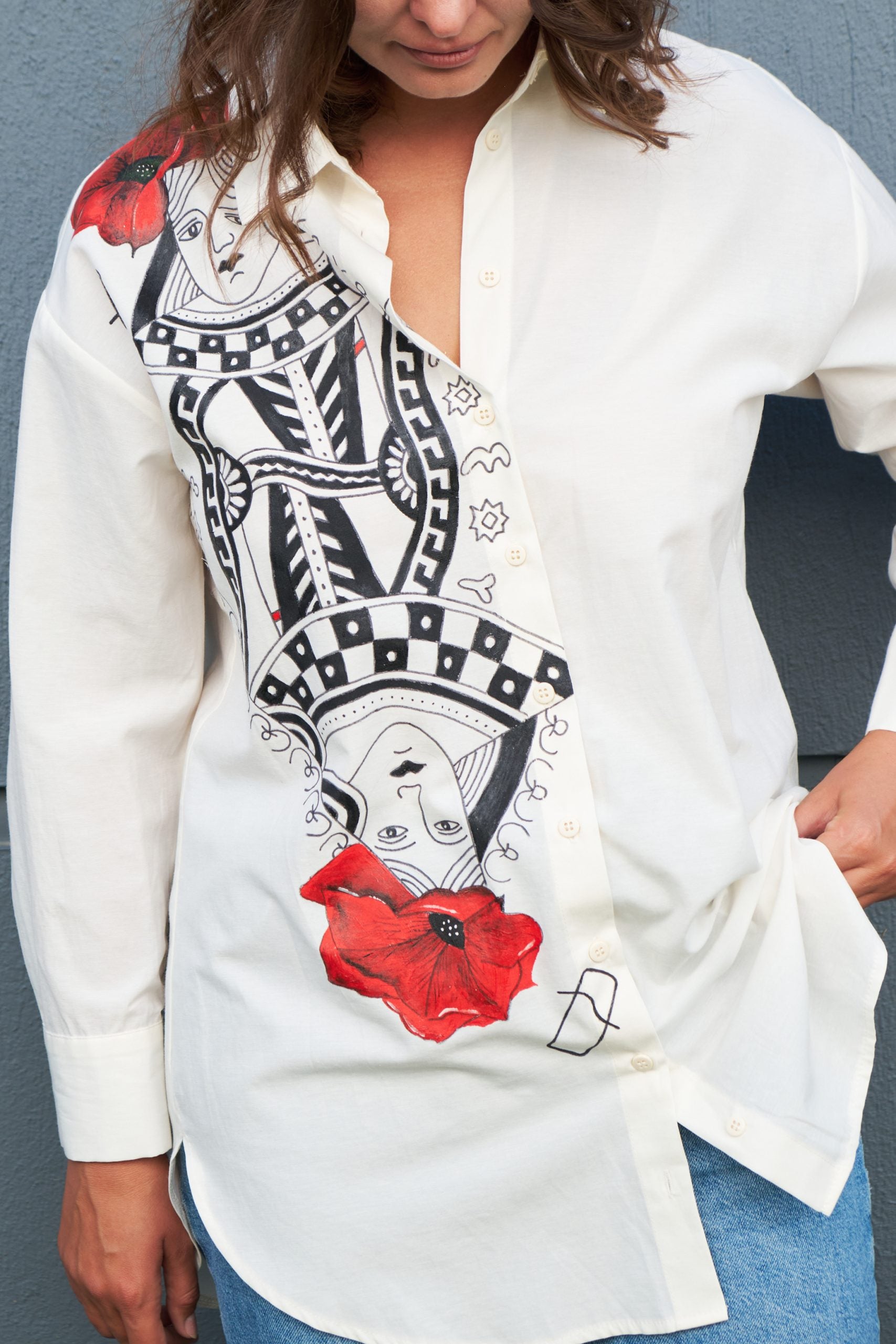 Chemise oversize Reine de cœur peinte à la main