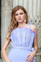 Robe asymétrique lavande avec perles faites à la main VİENNA