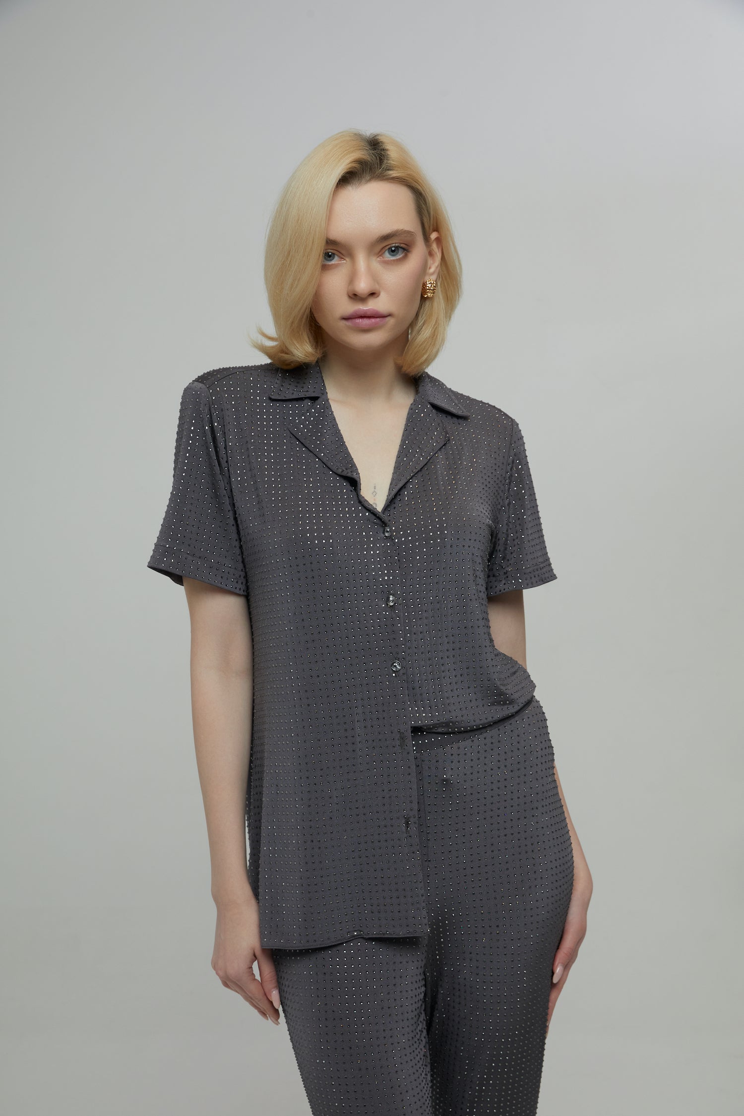Gray Shirt with Crystals Nicole