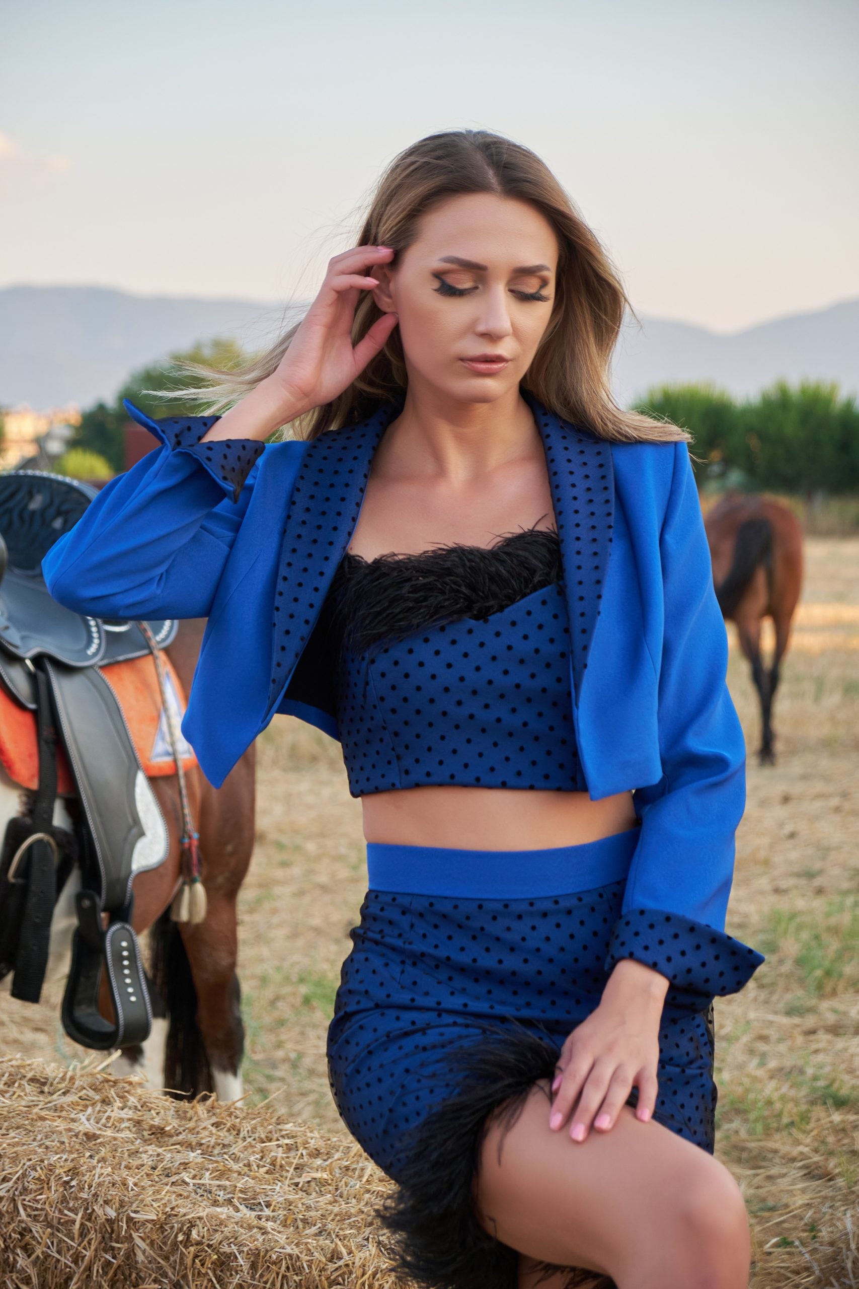 Veste courte à pois bleus VANESSA