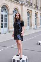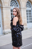 Bring some sparkle. Feel like the centre of attention in our Payette mini dress, with unique sequin fabric It is tied at the neck, and styled with its own Bolero . Pair it with heels or cowboy boots for a look that will take you from flawless vacation looks to head turning.