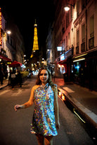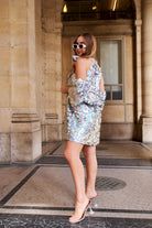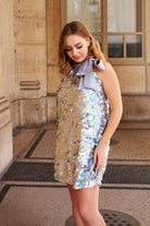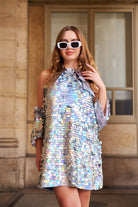 Bring some sparkle. Feel like the centre of attention in our Sequin mini dress, with unique sequin fabric It is tied at the neck, and styled with its own Bolero . Pair it with heels or cowboy boots for a look that will take you from flawless vacation looks to head turning.