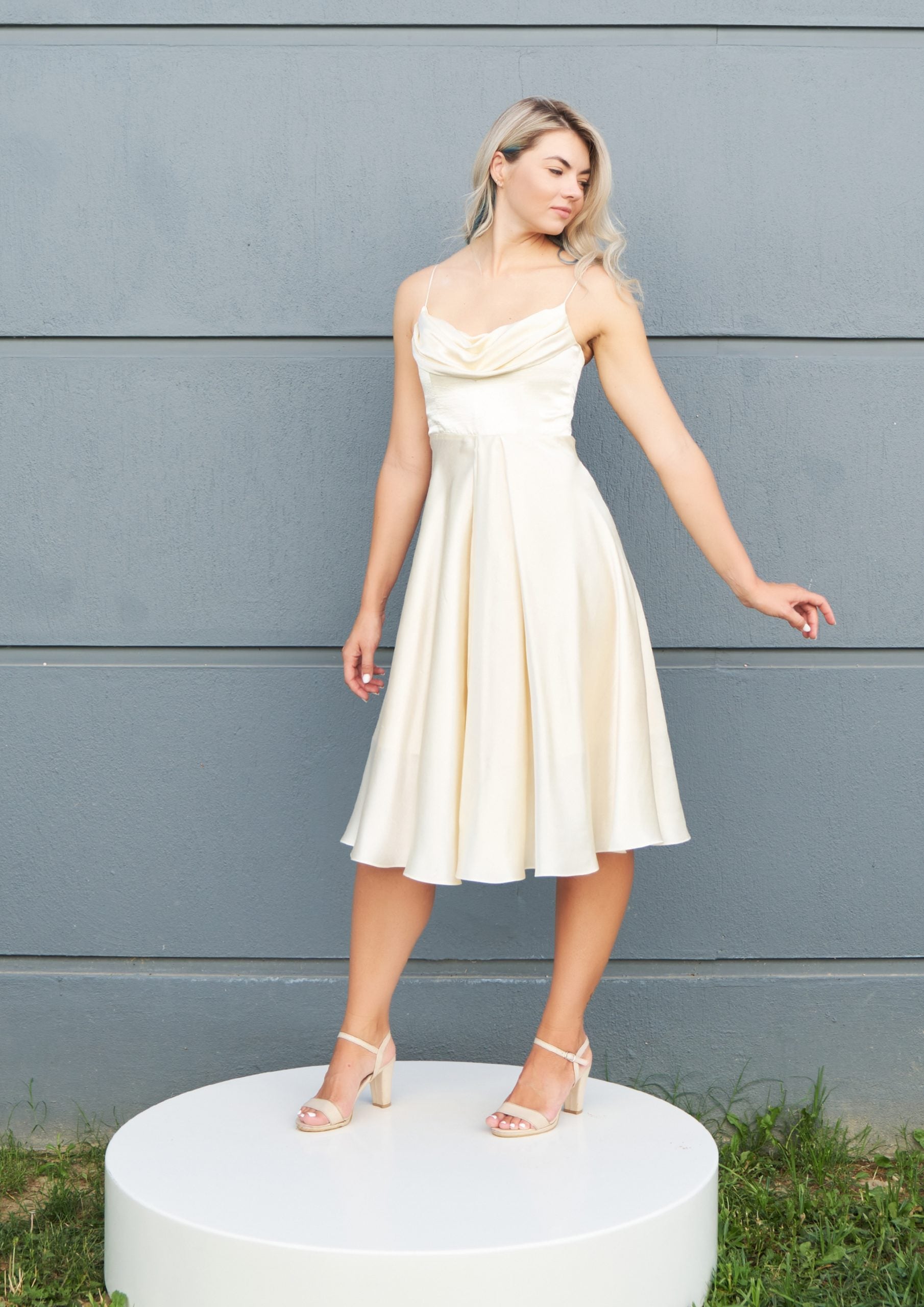 Robe de soirée midi champagne Aliss