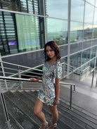 Grey Hologram Payette Mini Dress With Feathers And Bolero Set Luna