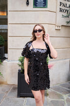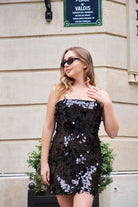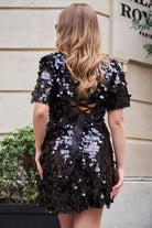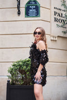 Black Payette Mini Dress With Feathers And Bolero Set Luna