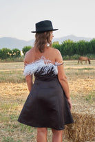 JULIA dress that fits well at the waist and is A-line, which should be in every woman's closet. This item with thin straps, special handmade cut flower details in the front, and is decorated with white feather trim on the front and back of the dress. This is Limited edition dress will make you look elegant at all events.