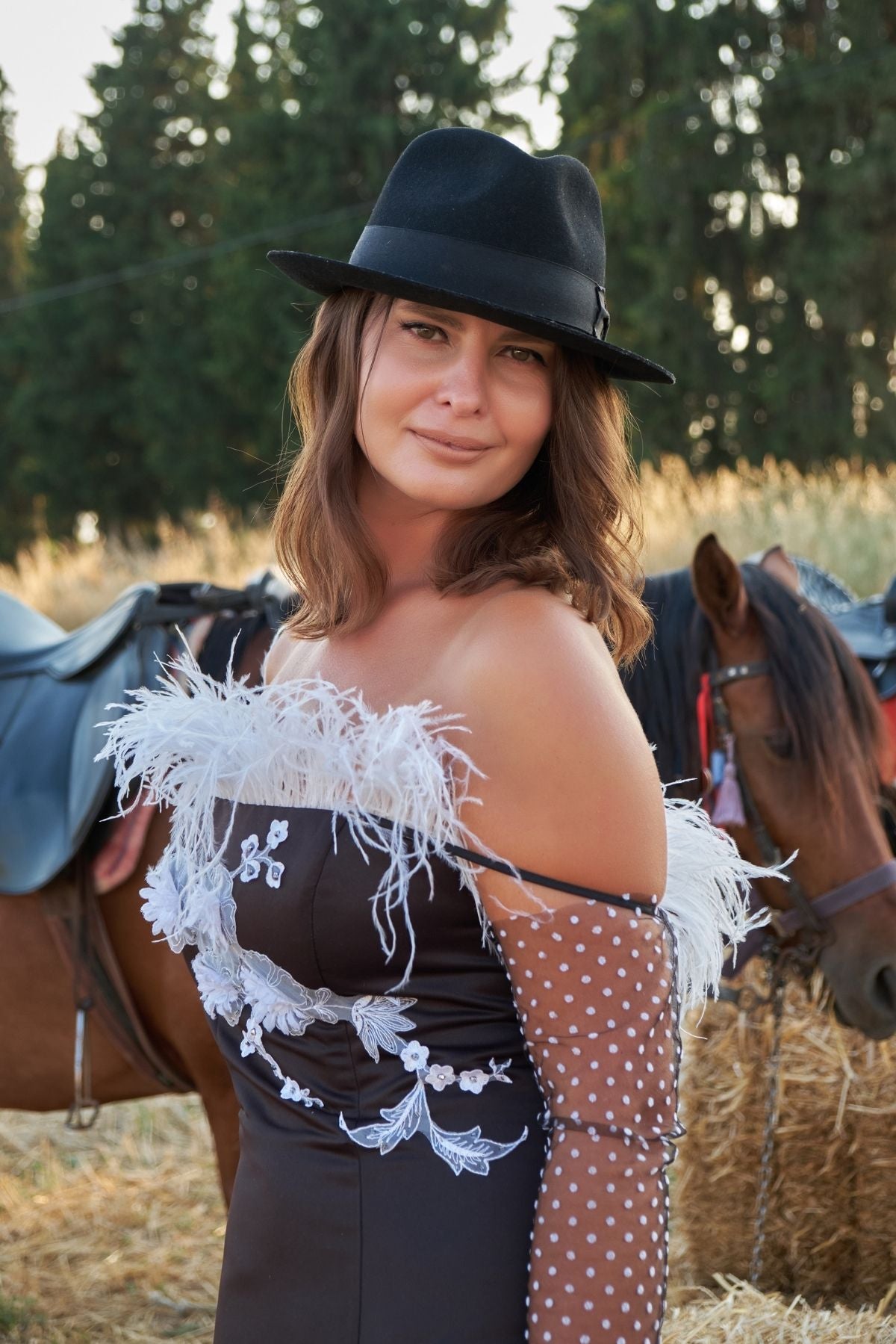 Floral Detailed Dress With Feathers JULIA